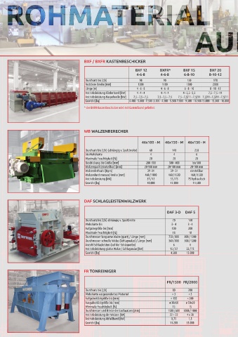 Antriebsleistung Abfallband [kW] 0,75 1,5 Antriebsleistung schnelle Walze [kW] 55 75 / 90 90 / 110 110 / 132