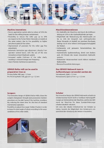 • Possibility to reduce the roller gap up to 34% • Möglichkeit der Reduzierung des Walzenspalts um nants, thanks to a newly designed system made of labyrinth and sealing rings increasing the life of