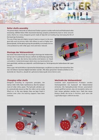 loads for the milling stresses containment. teilung um 50% an den Hydraulikzylinder geringer. tensioning. GENIUS Roller Mills implement bearings properly protected by dust or other contami-