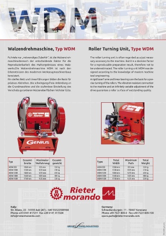 werks.Die Walzendrehmaschine WDM ist nach den be underestimated. The roller turning unit WDM was de-