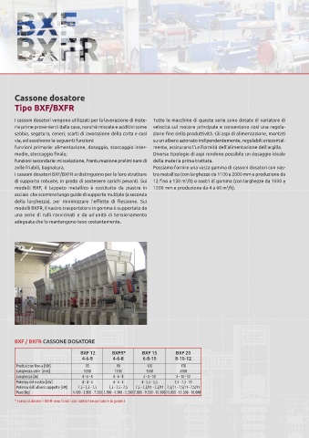 * I cassoni dosatori BXFR sono forniti con nastro trasportatore in gomma * Le doseur linéaire BXFR est livré avec tapis en caoutchouc.
