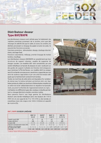 di supporto robuste, in grado di sostenere carichi pesanti. Sui 12 fino a 130 m /h) o nastri di gomma (con larghezze da 1000 a Les distributeurs doseurs BXF/BXFR se caractérisent par leur