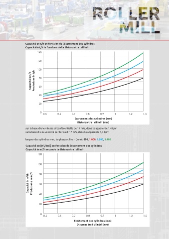 Données techniques broyeur à cylindre finisseur «GIGANT» Capacità in t/h in funzione della distanza tra i cilindri