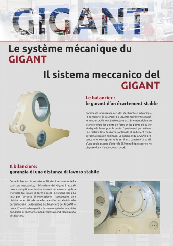 struttura meccanica, il bilanciere del Gigant è attual- lato sul pistone idraulico misura con precisione la