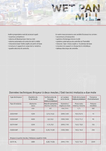 Extraction du matériau au moyen de: Données techniques Broyeur à deux meules / Dati tecnici molazza a due mole