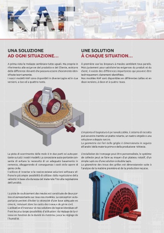 tante su tutti i nostri modelli. La concezione auto-portante con- de collecte peut se faire au moyen d’un plateau rotatif, d’un Chaque meule est raccordée au corps machine principal au