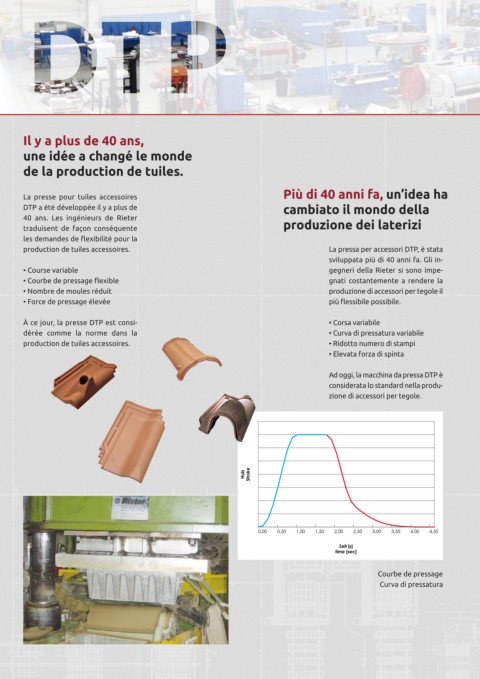 production de tuiles accessoires. La pressa per accessori DTP, è stata teur du moule. La courbe de pres- La curva di pressatura è impostata