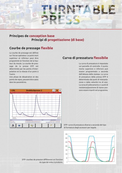 production de tuiles accessoires. La pressa per accessori DTP, è stata teur du moule. La courbe de pres- La curva di pressatura è impostata