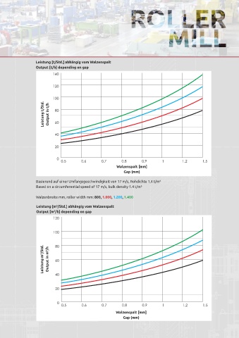 gap and output) Based on a circumferential speed of 17 m/s, bulk density 1.4 t/m³