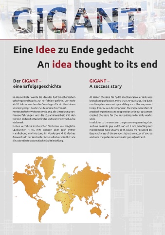 eine Erfolgsgeschichte A success story Walzenspalte notwendigen Voraussetzungen: the base system for the Gigant. The spindle lifting
