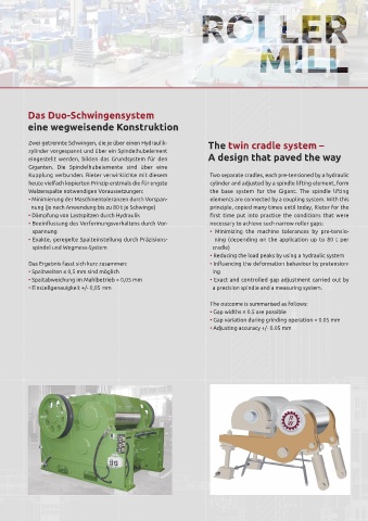 eine Erfolgsgeschichte A success story Walzenspalte notwendigen Voraussetzungen: the base system for the Gigant. The spindle lifting