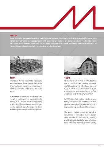 first machines for the brick factories. technicians, 5 sites abroad herewith in- 1874 in Konstanz under Swiss manage- fully. In 1911, at the World Fair in Turin,