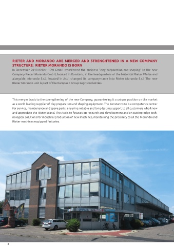 as a world leading supplier of clay preparation and shaping equipment. The Konstanz site is a competence center business areas, including consultancy and technical advice for its industrial customers, as well as digital service