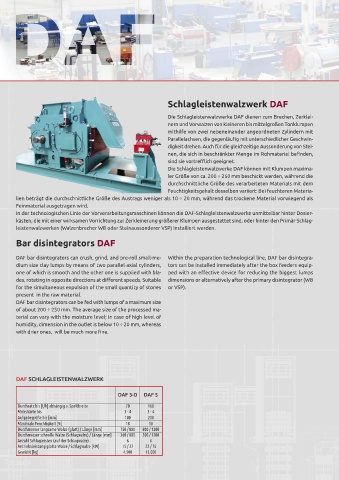 DAF bar disintegrators can be fed with lumps of a maximum size Automatisches zeitgesteuertes Schmiersystem, das eine lange