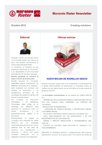 diferentes funciones de la empresa y la Arcilla, MorandoRieter ha desarrollado un innovador molino de