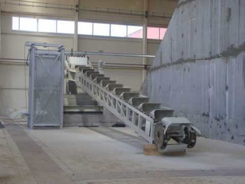 • Chain drive-by SEW geared motor with soft start device.