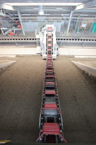 El modelo es especialmente adecuado para las instalaciones existentes, ya que permite automatizar la recuperación de arcilla sin necesidad de obras civiles especiales. Brazo pivotante en la parte inferior de la máquina. LBH no requiere ninguna obra civil particular para su instalación.