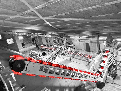 Particulièrement adapté dans le cas d'installations existantes, permettant d'automatiser la récupération de l'argile sans recourir à des travaux de génie civil spéciaux. Bras pivotant au bas de la machine. Il ne nécessite pas de travaux de génie civil particuliers