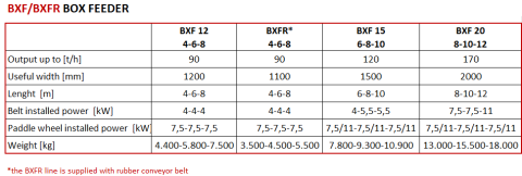 I cassoni alimentatori vengono usati per trattare la materia prima in arrivo dalla cava, nonché miscele preparate ed additivi quali sabbia, segatura, ceneri, lavorati della carta, ecc. Le funzioni principali sono: alimentazione, dosaggio, stoccaggi intermedio e finale; quelle secondarie: miscelazione, frantumazione preliminare di grumi friabili, pre-umidificazione.
