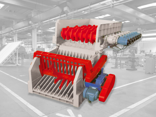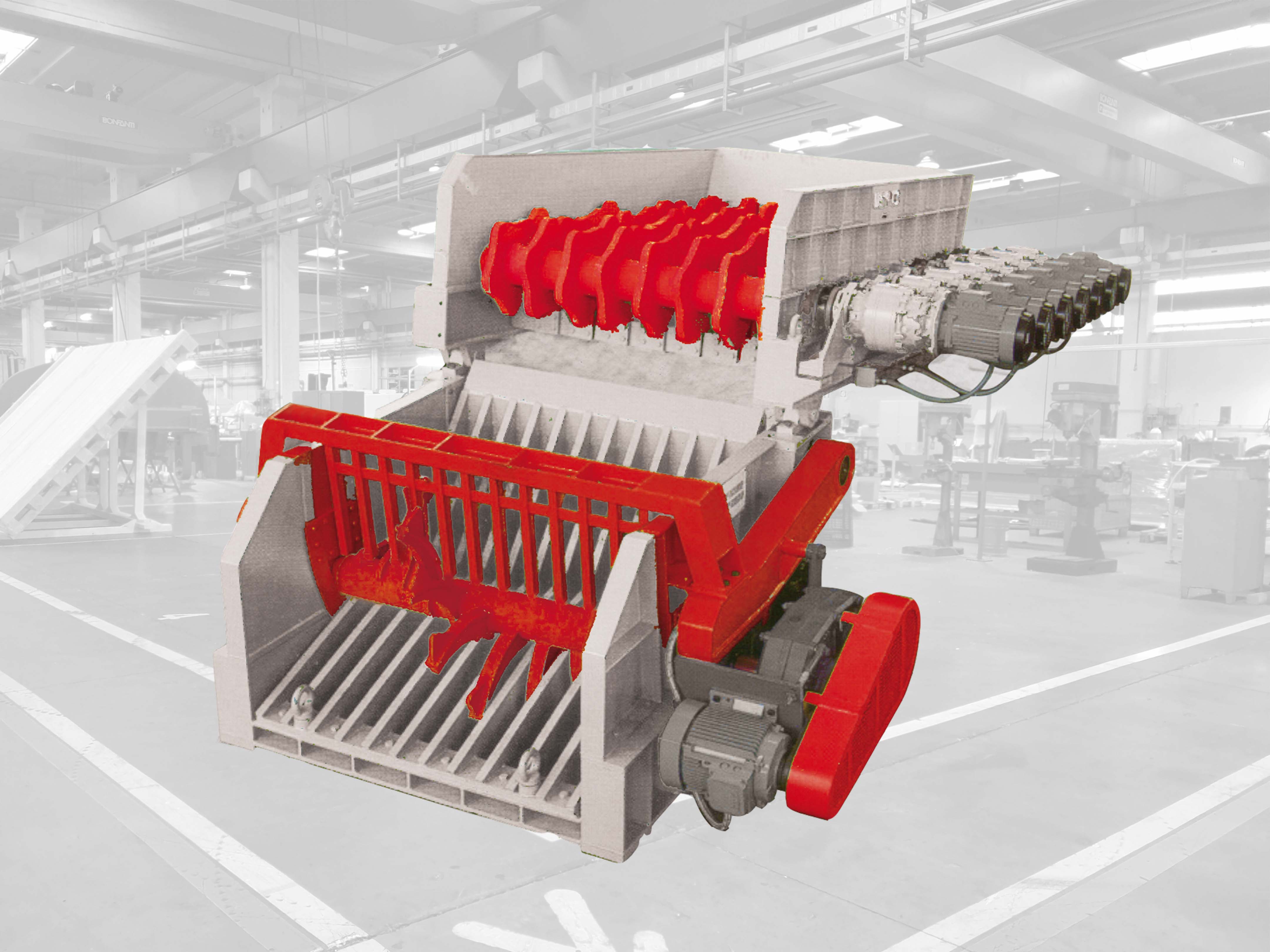 • The smooth roll gear-motor is installed on a support assembled on the machine structure, while the screw-shaped roll one is installed on a mobile support for the recovery of the shell wear;